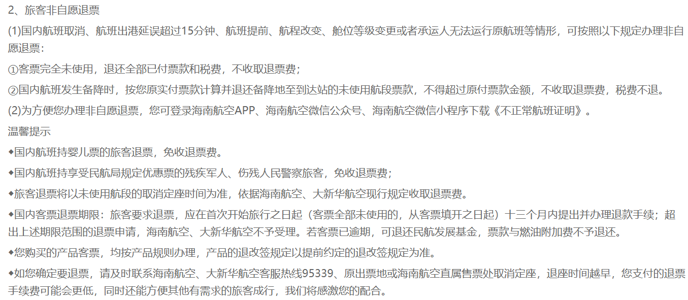 海南航空官网关于非自愿降舱的规定。