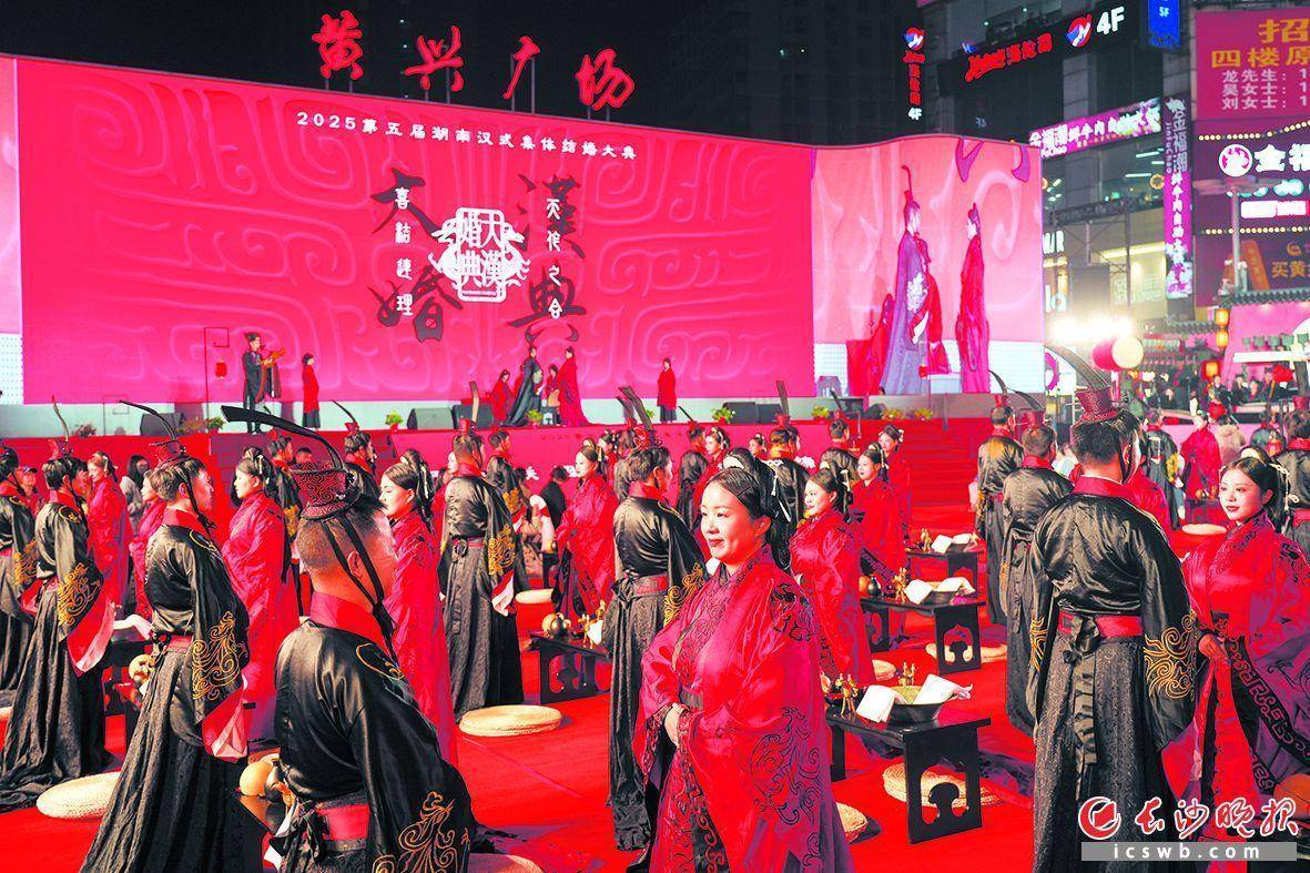 在医院,刘喜美一家急着找救命恩人,巧的是,梁智斌送其他伤员时再次出现,并留下了联系方式。多年后,长大的刘喜美勇敢追爱,一开始两人确实有年龄差的心理顾虑,但最终还是选择走到一起。交往5年后,他们在这场汉式婚典上圆满礼成。陈佳丽与周盛的爱情始于大学图书馆,今年是恋爱的第十年。“我们一直想找方式重拾初心,大汉婚典的庄重和我们对婚姻的敬畏太合了。”陈佳丽说,“未来还有很多十年,愿我们既是柴米油盐的伴,也是精神上的战友。”从安徽合肥来的程玉其和卢林燕,称这场婚礼是“珍贵的文化厚礼”:“从巢湖到湘江,行古礼时真感受到中华婚嫁文化的厚重,我们的小家也融入了文明大家。”杨雅丽和唐启淼因夜爬衡山结缘。“在衡山山顶确定关系,前后三个月就领证了。”杨雅丽笑着说,这次还带了宝宝来,既圆了他们俩的梦,也见证小家新开始,“结发礼让我懂了‘结发为夫妻’的分量,比婚书还神圣。”屈少佳和李江卫的日常则满是温情。“我常住单位,她想我却不让我折腾,但我再晚都会回,推开门灯总亮着。”屈少佳说,行结发礼时才明白,互相惦记、一盏灯、一个归人,就是最踏实的幸福。此外,去年参加婚典的四对台湾新人“携侣重游”,带来宝岛喜饼分享甜蜜;乌克兰姑娘瑞娅被去年的跨国情侣推荐来,和温州小伙蔡浩然共赴盛典,“两岸一家亲”“全球一家亲”的祝愿在婚典中传递。 集体婚典树新风,公益推动婚俗改革“爱情能浪漫,婚礼可简单,但文化和担当必须隆重。”湖南“大汉婚典”发起人、总策划曾国隆的话,道破这场公益婚典的初心。作为长沙大型集体婚礼,大汉婚典坚持“不收费、不商业化、以文化为本、推文明婚俗”,帮青年减压,倡导婚事新办、节俭不攀比。如今,越来越多新人选汉式集体婚礼。陈佳丽夫妇说这让他们重新理解婚姻责任,程玉其夫妇则表示“免费高品质婚礼大大减轻了负担”,屈少佳认为“简约有文化的婚礼,比铺张攀比的好”。汉式婚礼也让传统婚俗“活”了过来。邓女士从彩礼懂古礼深意,唐阿姨希望孩子了解传统婚俗,观礼市民在礼仪中感受“夫妻同心”。曾国隆说:“我们会继续传扬传统婚俗文化,让‘互敬互爱’延续,让‘简约典雅’新风走进更多家庭。”这场汉式集体婚典,不只是37对新人的幸福见证,更是长沙支持青年婚育、建青年发展型省份的生动实践。它让优秀传统文化融入当代生活,为两岸同胞搭起情感桥,向世界展现长沙的开放包容,更以城市级文化仪式,写下对传统的敬重、对文明新风的追求。本次活动由共青团湖南省委指导,长沙市精神文明建设办公室、长沙市文化旅游广电局、长沙市商务局、长沙市会展办、长沙市总工会、天心区人民政府联合主办,天心区精神文明建设办公室、天心区五一商圈管理委员会承办,长沙舜天文化传播有限公司策划承办。举报/反馈